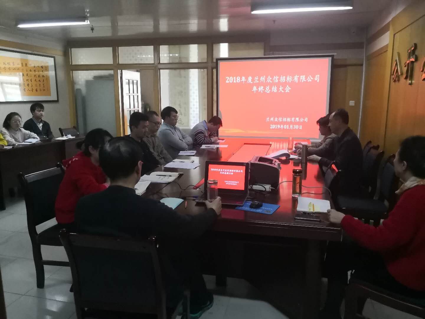 2019年元月30日在兰州众信招标有限公司会议室举行了“2018年兰州众信招标有限公司年终总结大会”,全体员工参加了此次会议。对2018年工作进行了总结并对2019年工作做了展望。